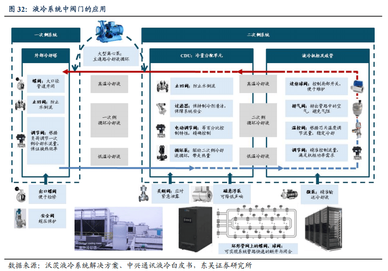 阀门作为液冷系统的核心关键件,在温控方案中发挥着关键作用。在高密度计算环境中,即使是轻微的热管理中断也可能导致性能下降或代价高昂的停机。阀门通过实现流量调节与系统隔离,确保冷却系统实现精准控制,保障系统正常运行,为液冷系统的核心零部件。阀门广泛部署于冷却塔、CDU、机柜及分集水器(Manifold)等核心节点。