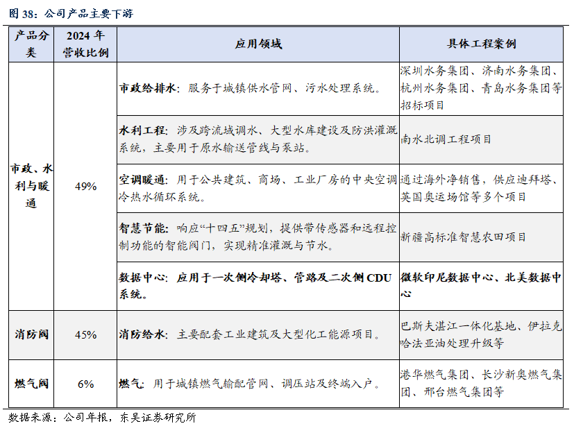 技术创新引领行业,全球化生产与服务体系深厚:(1)产品谱系纵深发展,核心技术自主可控: 公司产品涵盖150多个型号、2000多个规格,广泛应用于市政给排水、消防、暖通及燃气系统。其自主研发的“不停水加装阀门”技术获得国家发明专利,填补了国内行业空白。(2)全球化进展显著,海外营收占比领先:海外营收占比长期保持 75%左右,产品远销全球70多个国家和地区,并在美国、英国、沙特、中国香港、泰国设有控股子公司,构建了成熟的国际销售网络与本土化生产能力。